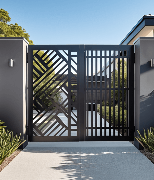 Choose from a variety of designs and materials — including tubular steel, solid infill panels, or architectural feature styles — all finished with premium Dulux powder coatings for durability and a polished look.